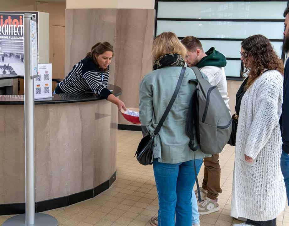 Inscription auprès du Point informations uniquement pour l’atelier de remplacement « maquette », 25 personnes par créneau. Départ devant le comptoir « Départ » dans la salle des Huit colonnes.