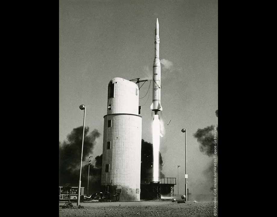 Décollage de la fusée Diamant A depuis le Centre interarmées d’essais d’engins spéciaux d'Hammaguir, en Algérie